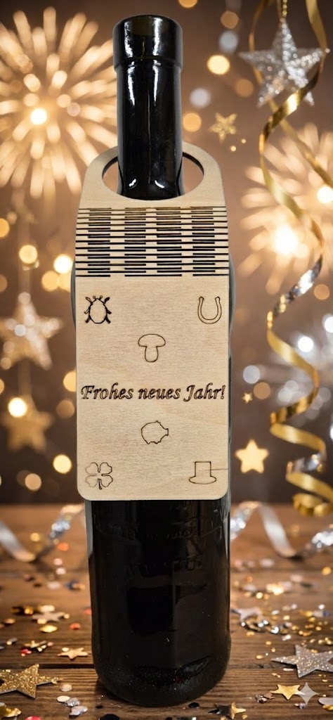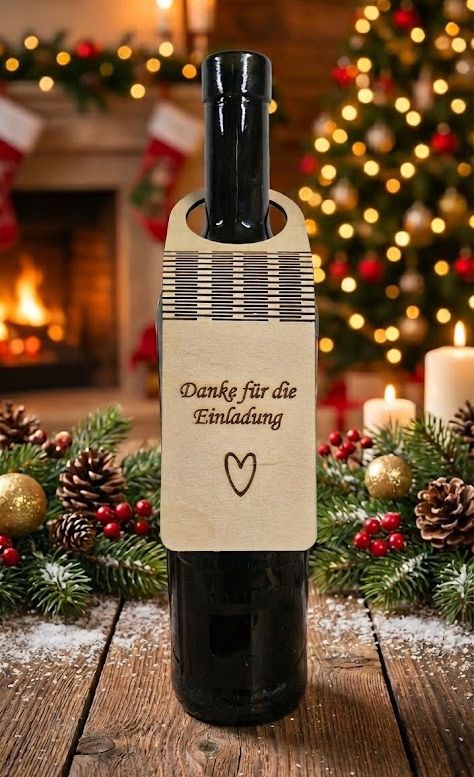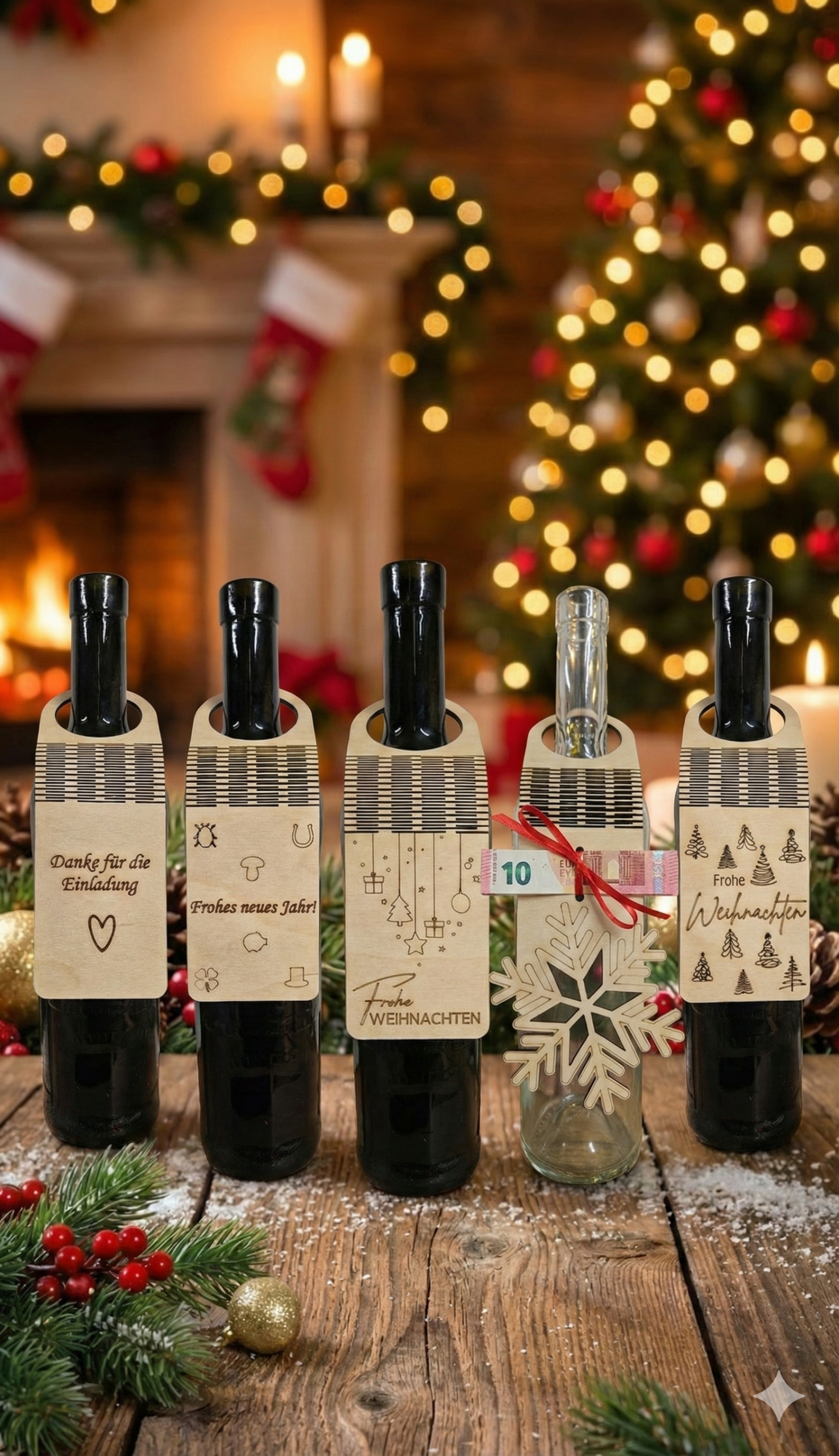 Unsere Flaschenanhänger aus Holz sind perfekt für Wein, Likör oder Sektflaschen.