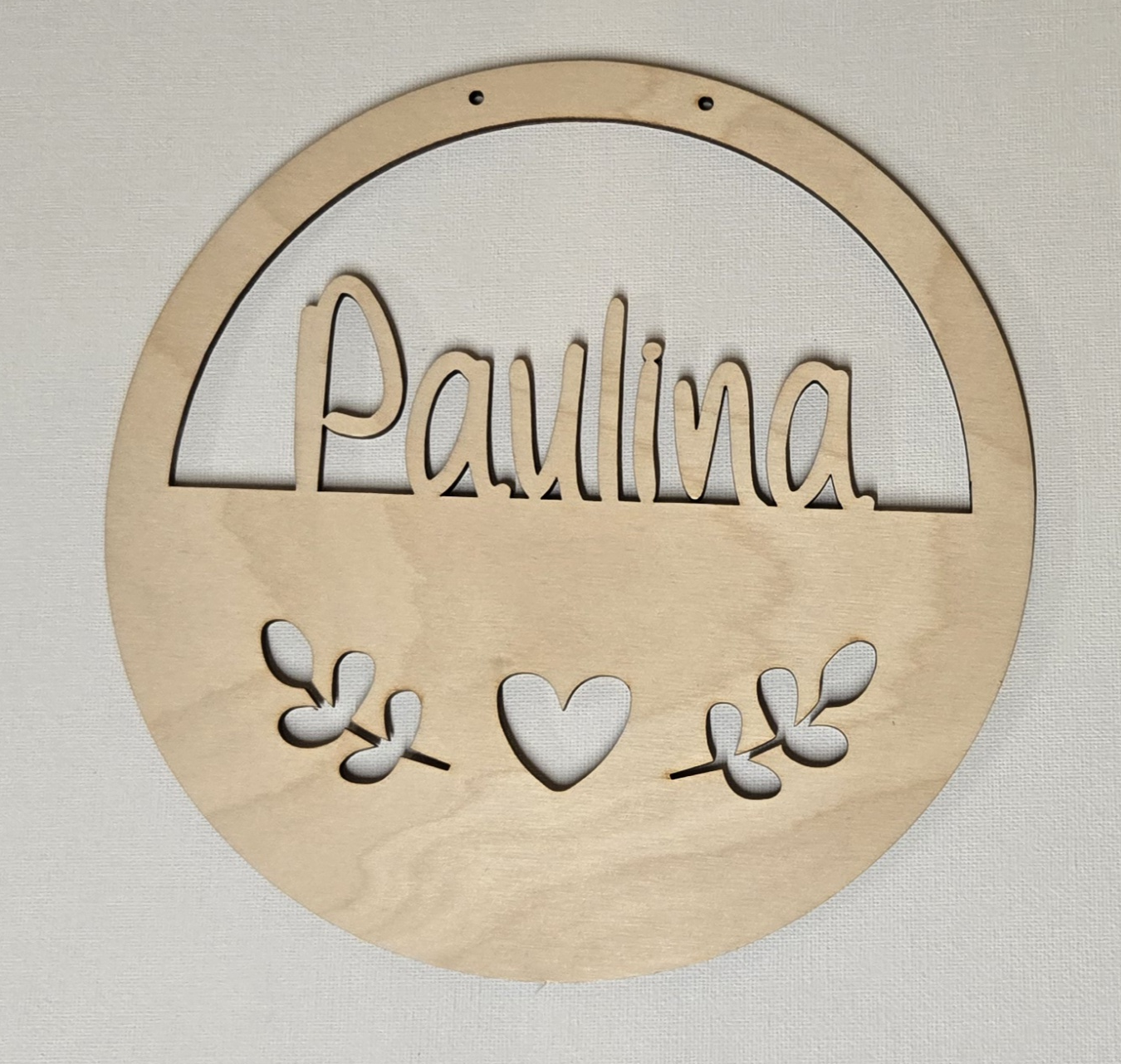 Verleihe dem Kinderzimmer eine ganz persönliche und warme Note. Dieses liebevoll gestaltete Holzschild wird mit dem Wunschnamen deines Kindes personalisiert. Die feinen Details mit Herz und Blätterzweigen machen es zu einem zauberhaften Blickfang über dem Bettchen, an der Zimmertür oder im Regal. Ein zeitloses Geschenk zur Geburt, Taufe oder zum Geburtstag, das lange Freude bereitet.