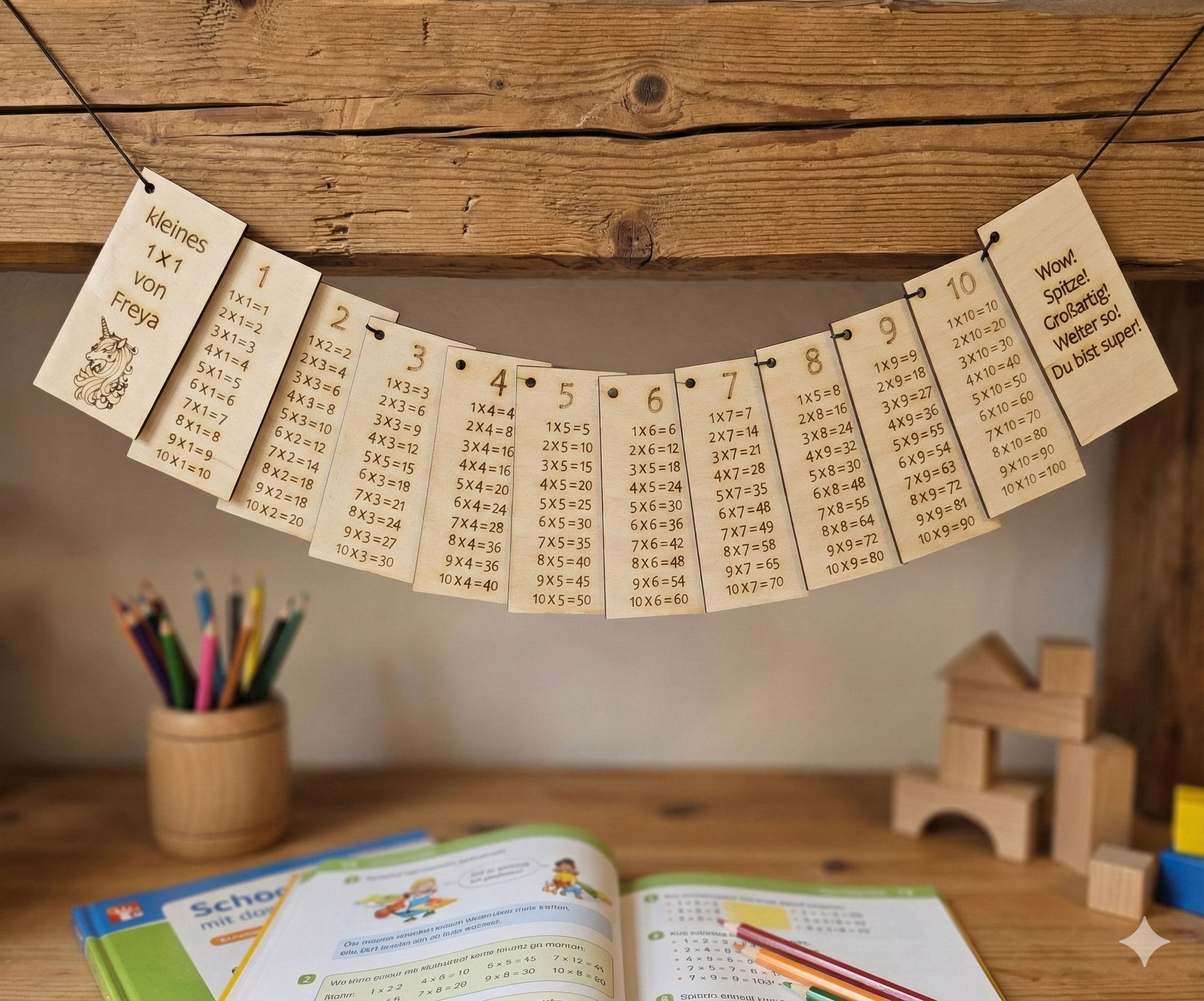 Personalisierte 1×1 Lerntäfelchen aus Holz