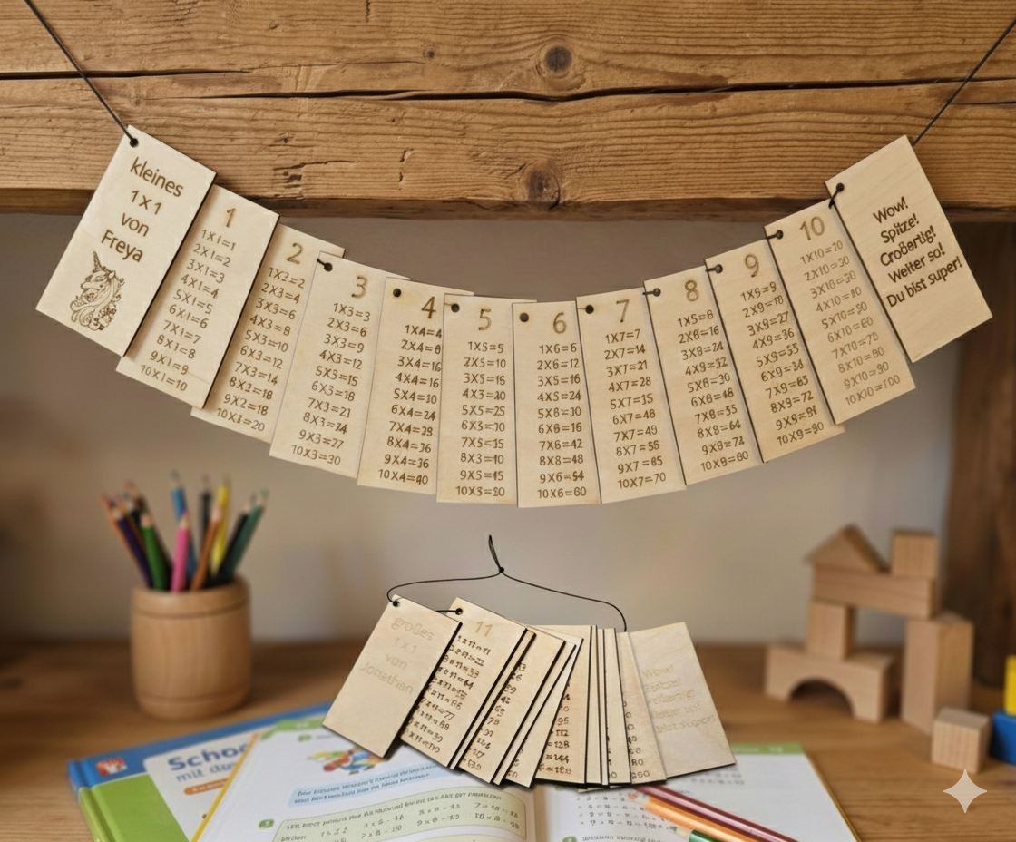 Mach das Lernen der Malreihen zu einem besonderen Erlebnis! Unser wunderschönes Set aus Holztäfelchen hilft deinem Kind, das kleine und große Einmaleins spielerisch und nachhaltig zu meistern.